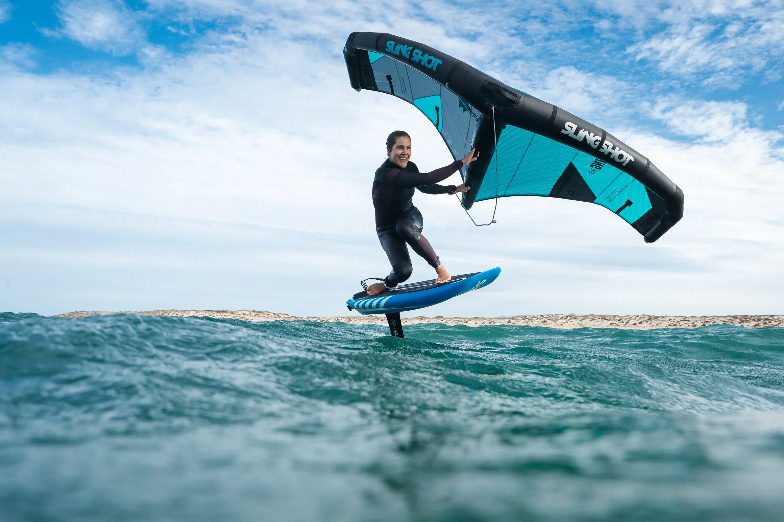 In order to get on foil, you’ll need to generate consistent forward speed. Controlling the wing and balancing on the board will be your first goals but once you’ve achieved those, you’re going to want to foil! Use your wing to work on going faster, yet still in control.