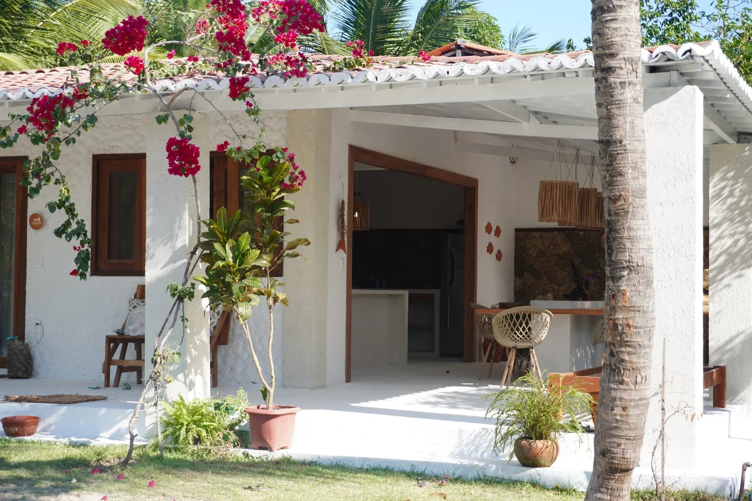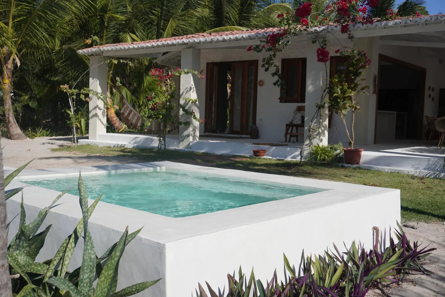 The beautiful Casa Yvy, has lovely double and triple rooms. The house has spacious outdoor common areas, a pool, full kitchen and is steps from the beach.